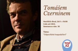 Senátor Tomáš Czernin byl hostem besedy, která se uskutečnila 26. září v havlíčkobrodském Café-art OKO. Moderátorem večera byl místostarosta Havlíčkova Brodu Libor Honzárek.