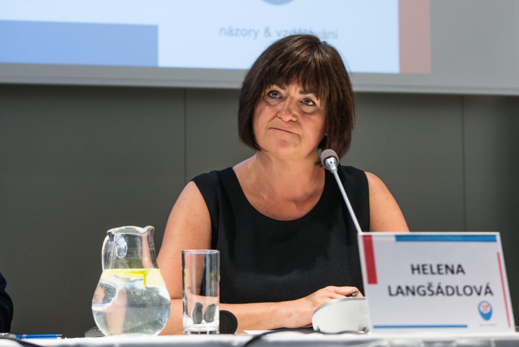 Langšádlová: „Jsme v situaci, kdy žijeme ve velice provázaném globálním světě. Evropské společenství je společenství, kde žije půl miliardy lidí, jsme velice bohatým společenstvím. Ale z globální hlediska je integrace nejenom potřebná, ale i nezbytná, protože i velké evropské země jsou z hlediska globálního v porovnání s Čínou a dalšími subjekty v podstatě subjekty menšími. Proto si myslím, že i z ekonomického hlediska a v této době je evropská integrace jedinou cestou. Samozřejmě jsou na místě otázky jak, v jakých oblastech, jak rychle a tak dále. Já jsem přesvědčená, že naším cílem by mělo být, aby Česká republika a nejenom Česká republika ale i další evropské země byly společenstvím, které bude bezpečné, stabilní a prosperující. A tak bychom se měli u každé té otázky položit sub-otázku, jestli ten krok posílí stabilitu, bezpečnost a ekonomickou prosperitu“.