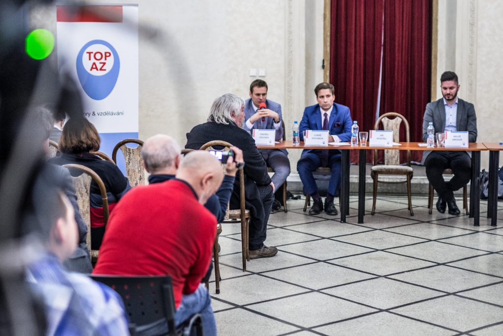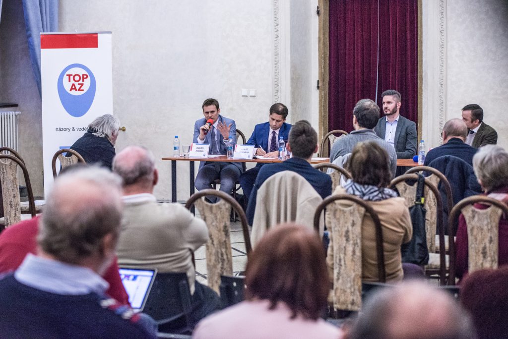Na moderované diskusi pořádané TOPAZem ve středu 7. března 2018 v Michnově paláci si tyto a další otázky kladli pozvaní odborníci, Miloš Gregor, politolog z Masarykovy univerzity, Ondřej Houska, novinář z Hospodářských novin, a Lukáš Kovanda, hlavní ekonom investiční společnosti CYRRUS. Úvodní slovo pronesl předseda TOP 09 a europoslanec Jiří Pospíšil a celou diskusi moderoval výkonný ředitel TOPAZu a místopředseda TOP 09, Marek Ženíšek.