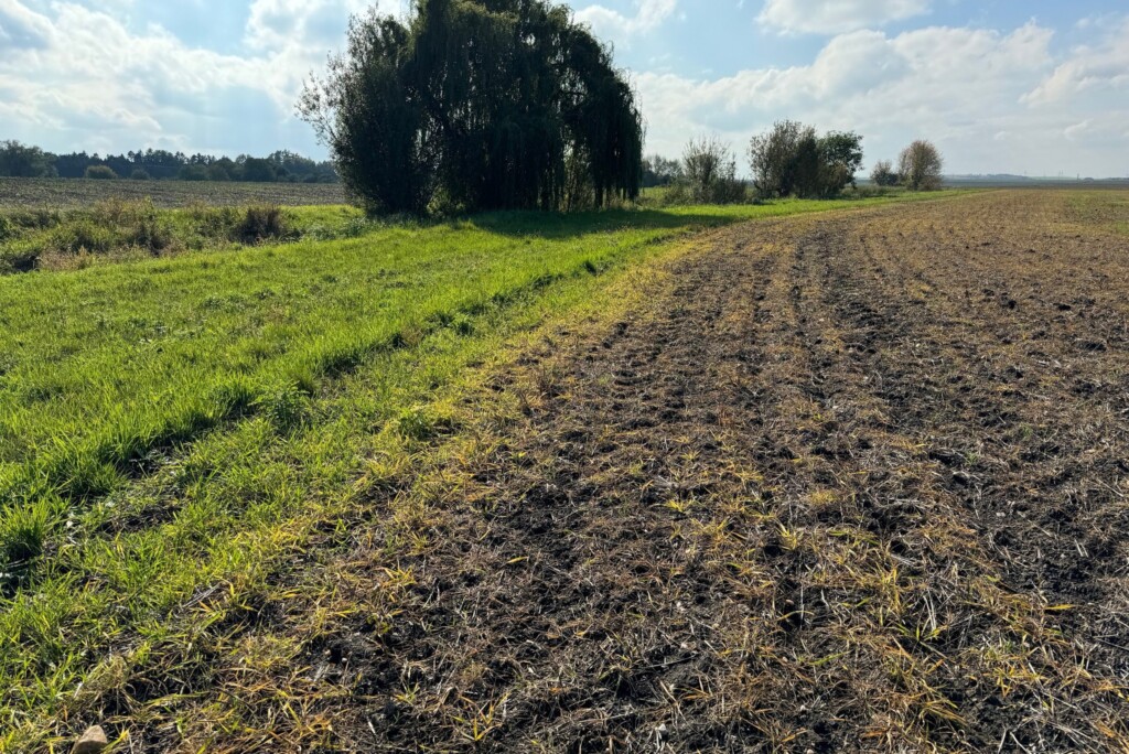 ,,Devastace naší přírody pesticidy – v tomto případě podzimní zahubení podrůstků a dalších rostlin (ano často plevelů) totálními herbicidy, nejčastěji glyfosátem/Roundupem pokračuje. A je to asi nejzbytečnější aplikace herbicidů. Fotky jsou z víkendu z Polabí. Ten zelený pás „bez aplikace“ je podél vodoteče. 5 m od vodotečí už 2 roky musí být pás nestříkaných kultur. Naštěstí aspoň něco.