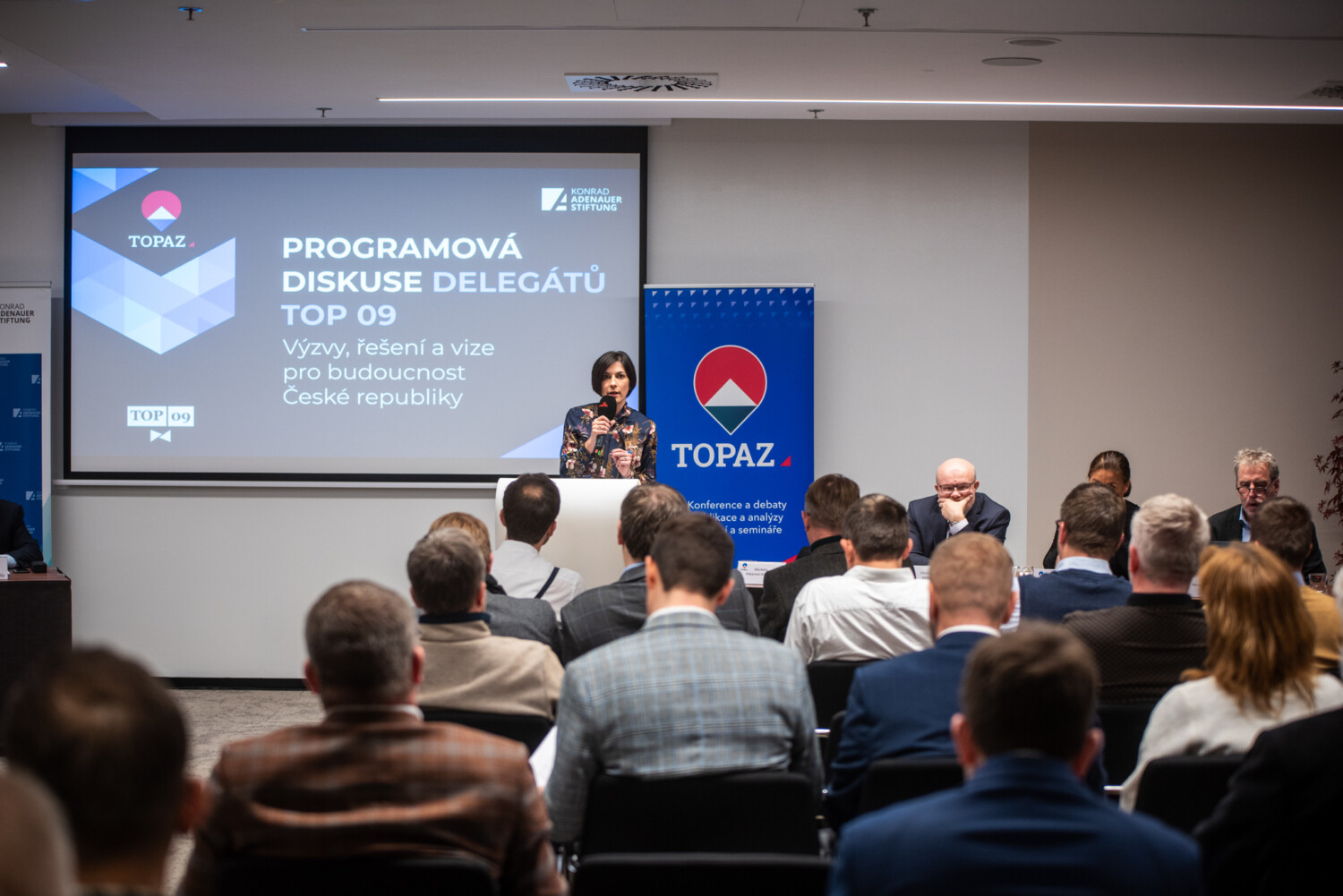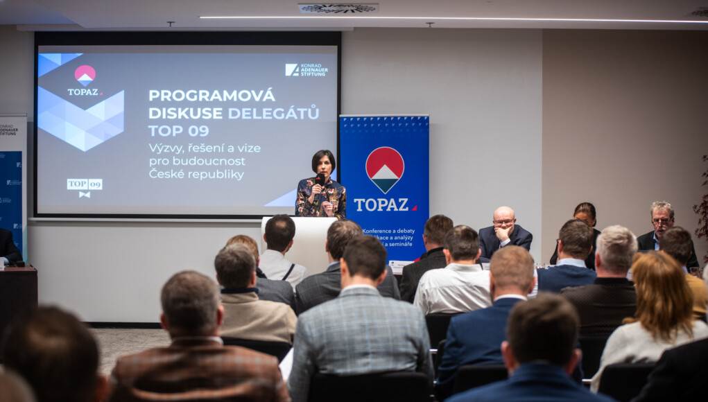 V pátek 10.11. jsme za podpory Konrad-Adenauer-Stiftung uspořádali programovou konferenci pro delegáty sněmu TOP 09. Tématem večera byly výzvy, řešení a vize pro budoucnost České republiky. Úvodního slova se ujala předsedkyně strany a Poslanecké sněmovny Markéta Pekarová Adamová, která hovořila o programu TOP 09 jakožto receptu na ekonomický růst a zvýšení životní úrovně v České republice. Na debatě vystoupili také další zajímaví řečníci. Ministryně pro vědu, výzkum a inovace Helena Langšádlová prezentovala svou práci a hovořila o budoucnosti naší vědy. Ministr zdravotnictví Vlastimil Válek ukázal data o českém zdravotnictví a představil výzvy a vize v této oblasti. Nevynechal ani velmi aktuální téma digitalizace zdravotnictví, kterým se jeho rezort intenzivně zabývá. Další z řečníků, europoslanec Luděk Niedermayer, se zaměřil na brzdy ekonomického rozvoje a na to, jak tento rozvoj naopak nastartovat. Jedním z kroků je podle něj přijetí eura. Na ekonomická témata navázal poslanec a uznávaný ekonom Miloš Nový, který mluvil o zdravé ekonomice a o cestě k návratu Česka mezi nejvyspělejší země světa. Slovo od něj převzal jeho kolega z poslaneckých lavic Matěj Ondřej Havel, který se ve své prezentaci zaměřil na vzdělání, které je podle něj klíčem k odolné společnosti. Shrnul také policy paper Novela zákona o pedagogických pracovnících, který vznikl v souvislosti s jednou z našich letošních konferencí. Nebylo možné vynechat ani oblasti životního prostředí a energetiky, na které se ve své prezentaci zaměřil Lukáš Řádek. Vycházel při tom z výstupů Nová energetika a Synergie pro Udržitelnost: Biodiverzita, životní prostředí a oběhové hospodářství z naší nedávné programové konference ,,Aktuální výzvy v oblasti životního prostředí, klimatu a energetiky“. Následovala diskuze, během které padlo od delegátů mnoho zajímavých dotazů.