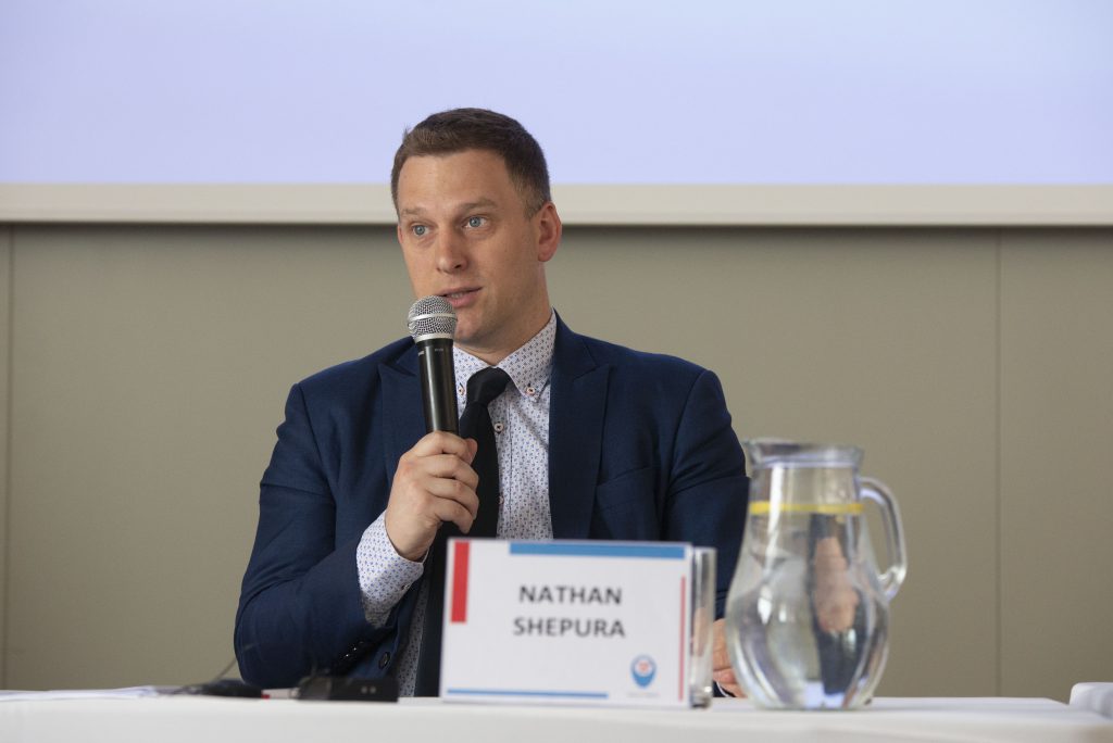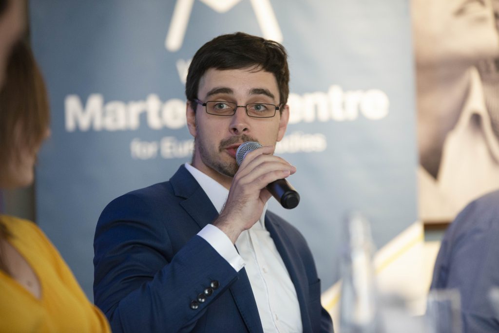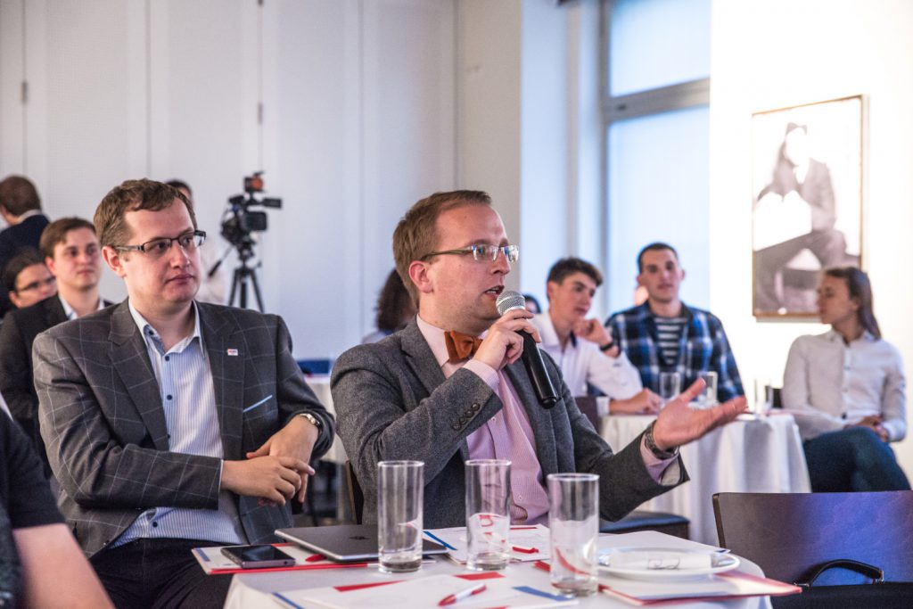 – Diskuse s Anou Lídií Pereirou (YEPP) a Nathanem Shepurou (EPP political advisor) o analýze scénáře výsledků voleb do Evropského parlamentu v roce 2019.