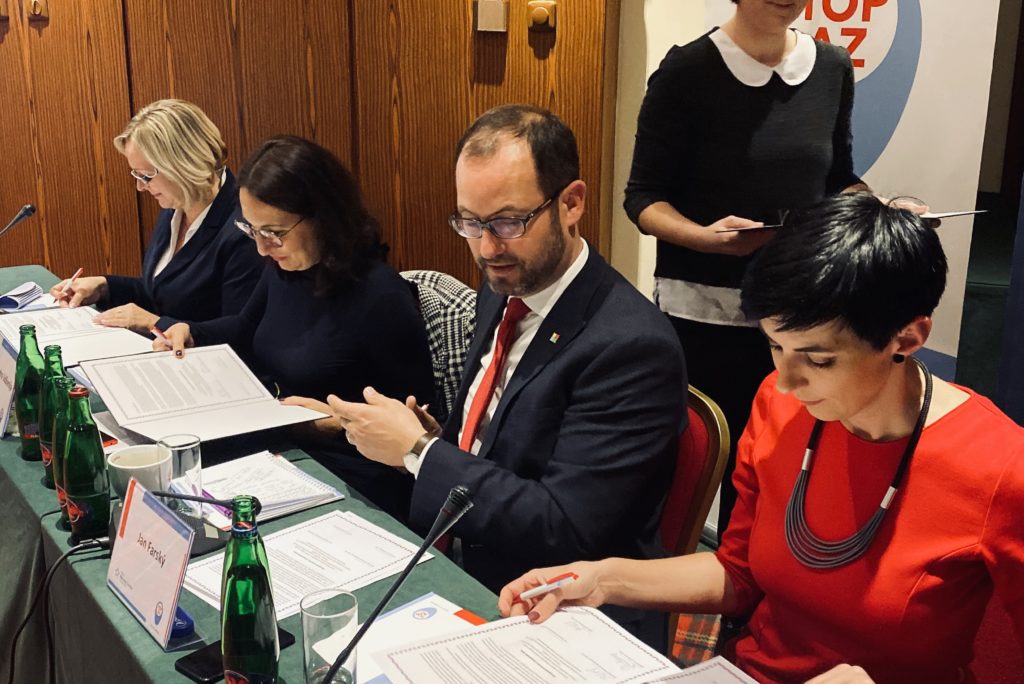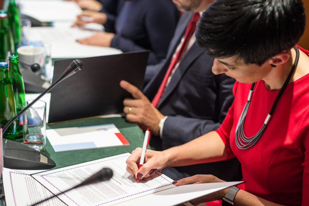 Delaraci o pěti pojistkách podepsala Markéta Pekarová Adamová, první místopředsedkyně TOP 09, Alexandra Udženija, první místopředsedkyně ODS, Šárka Jelínková, první místopředsedkyně KDU-ČSL a Jan Farský, první místopředseda hnutí STAN.