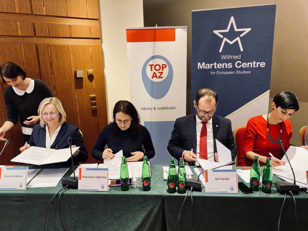 Konferencí „Střední třída na křižovatce“ a představením sborníku analýz a odborných prací vyvrcholil letošní projekt politického institutu TOPAZ a evropského think tanku Wilfried Martens Centre for European Studies. Zkoumali jsme jak se mění a rozpadá střední třída. TOPAZ do debaty přizval první místopředsedy KDU-ČSL, ODS, STAN a TOP 09, kteří se na místě shodli na pěti pojistkách demokratického právního státu a ve společném prohlášení se zavázali tyto principy dodržovat.