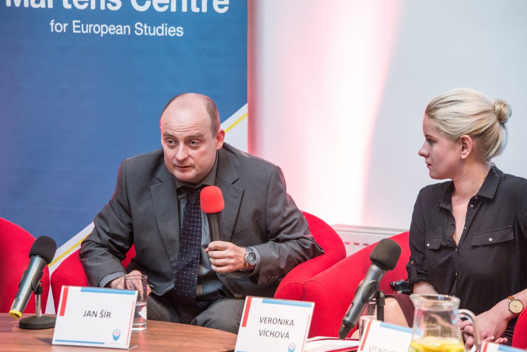 Na konferenci, která se konala hodinu po ukončení jednání u kulatého stolu přivítala účastníky Helena Langšádlová, poslankyně za TOP 09: „Samozřejmě proti ruské propagandě se nedělá dost, ale leccos se už dělá. Třeba na setkání NATO s EU se tato problematika velmi řeší. Představitelé NATO si tuto hrozbu velmi dobře uvědomují. Největší hrozba totiž není možný vojenský útok, ale fakt, že Rusko nás rozkládá vnitřně. Ono se to proměňuje, jednou je to o migrantech, jindy o Krymu, potřetí o tom, že se nám tady šíří jód. A otázky: Co se děje s EU. Jednou je potom Putin ochránce křesťanství, příště je zastánce panslavismu. Vždy to reaguje na nálady ve společnosti“. Dále vystoupili Michael Romancov mimo jiné se svou reakcí na otázku, co se snaží Rusko získat zásahy do voleb: „Tak ten ideální výsledek si umím představit, Miloš Zeman na Hradě a SPO-Zemanovci s nějakým větším než nadpolovičním počtem hlasů ve sněmovně a ta zbylá část z KSČM. K tomu však doufejme nedojde. Ale pro Rusko je v zásadě optimální výsledek, já chci jen podotknout, že si nemyslím, že toho jsou Rusové reálně schopni to dokázat, ale myslím si, že pro ně je optimální jakýkoli výsledek, který bude znamenat, že dlouhou dobu nebude možné sestavit vládu. Prostě cokoliv, co zdestabilizuje, znevěrohodní směrem do České republiky standartní fungování parlamentní demokracie a vlády. Říkám, a to si myslím, že je zase naše chyba, protože tady se dlouhodobě podceňovalo vzdělávání obyvatelstva tímto směrem. Vezměte si, kolik našich spoluobčanů neví, co může a co nemůže prezident, vláda, parlament. Jak lidé vlastně netuší, že vláda a parlament není to samé atd. No a asi 40 % našim spoluobčanům je to jedno, z toho zbytku si velká část myslí, že je něco špatně ale neví co. Tohle je obecně situace, která Rusům, nebo komukoliv jinému, prostě vyhovuje.“, Jan Šír, který se také vyjádřil k probíhajícím cvičením Ruské federace na území Běloruska: „Co se týče stávajících vojenských cvičení Ruska a Běloruska, Západ 2017, tak tu situaci je určitě dobré sledovat vzhledem k tomu, že vojenské agrese proti Gruzii i Ukrajině spadaly do období masivních vojenských cvičení. Ve vojenských operací v Gruzii se angažovala část vojáků, kteří cvičili na cvičení Kavkaz 2008. V únoru 2014 právě před tou invazí na Krym došlo k masivním vojenským přesunům a cvičením podél celého pásma rusko-ukrajinských hranic. S ponaučením této nedávné zkušenosti jsou přesunu ruské armády pečlivě sledovány. To cvičení, které probíhá od včerejška (15. září) má specifické znaky, protože Rusko poprvé cvičí na území cizího státu“.a Vít Novotný.